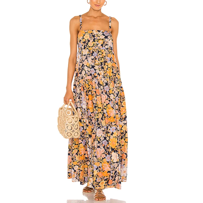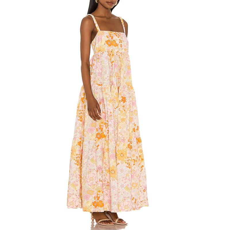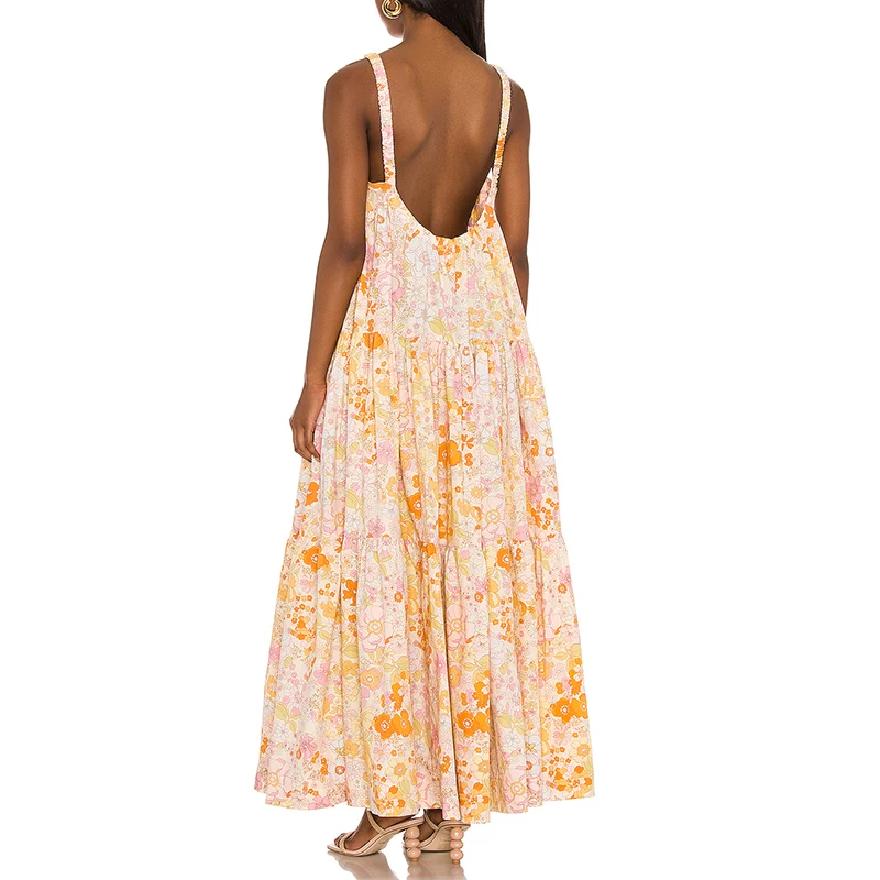 100% Cotton Multi-color Floral Printed Women Sleeveless Long Maxi Casual Dress
